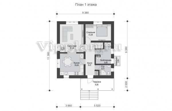 | Размеры дома: | 11.38м×9.38м |
